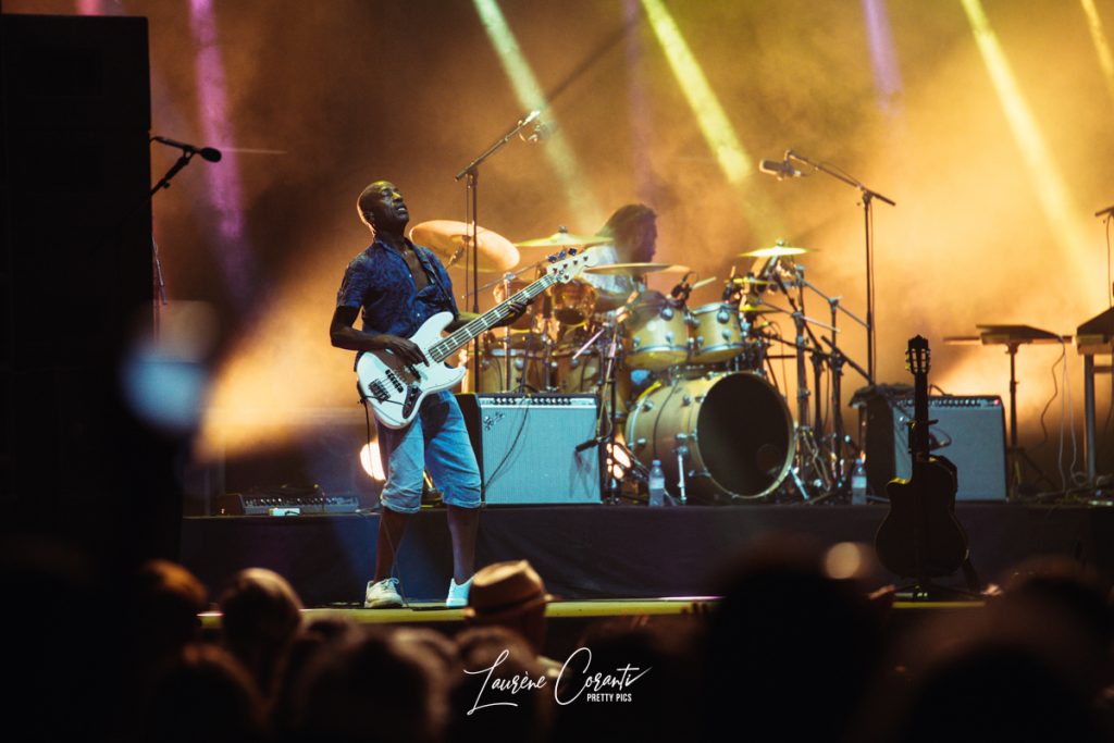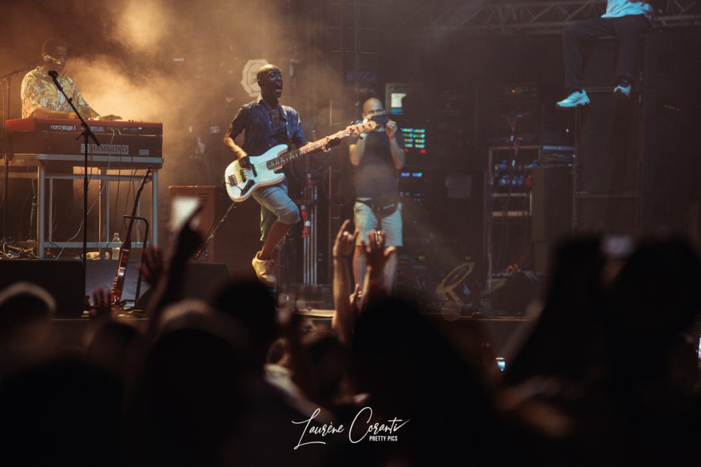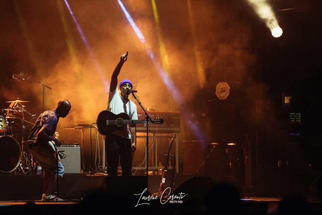 Dès les premières notes à la guitare, l’ambiance était électrique. Reprenant certains des plus grands morceaux reggae, il a su entraîner le public dans un tourbillon de rythmes, soutenus par les basses captivantes du reggae. La mer d’admirateurs oscillait, créant une atmosphère hypnotique, évoquée par les couleurs chaudes orange, jaune et vert.