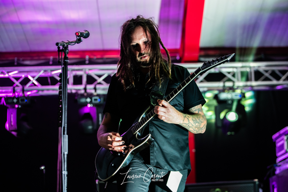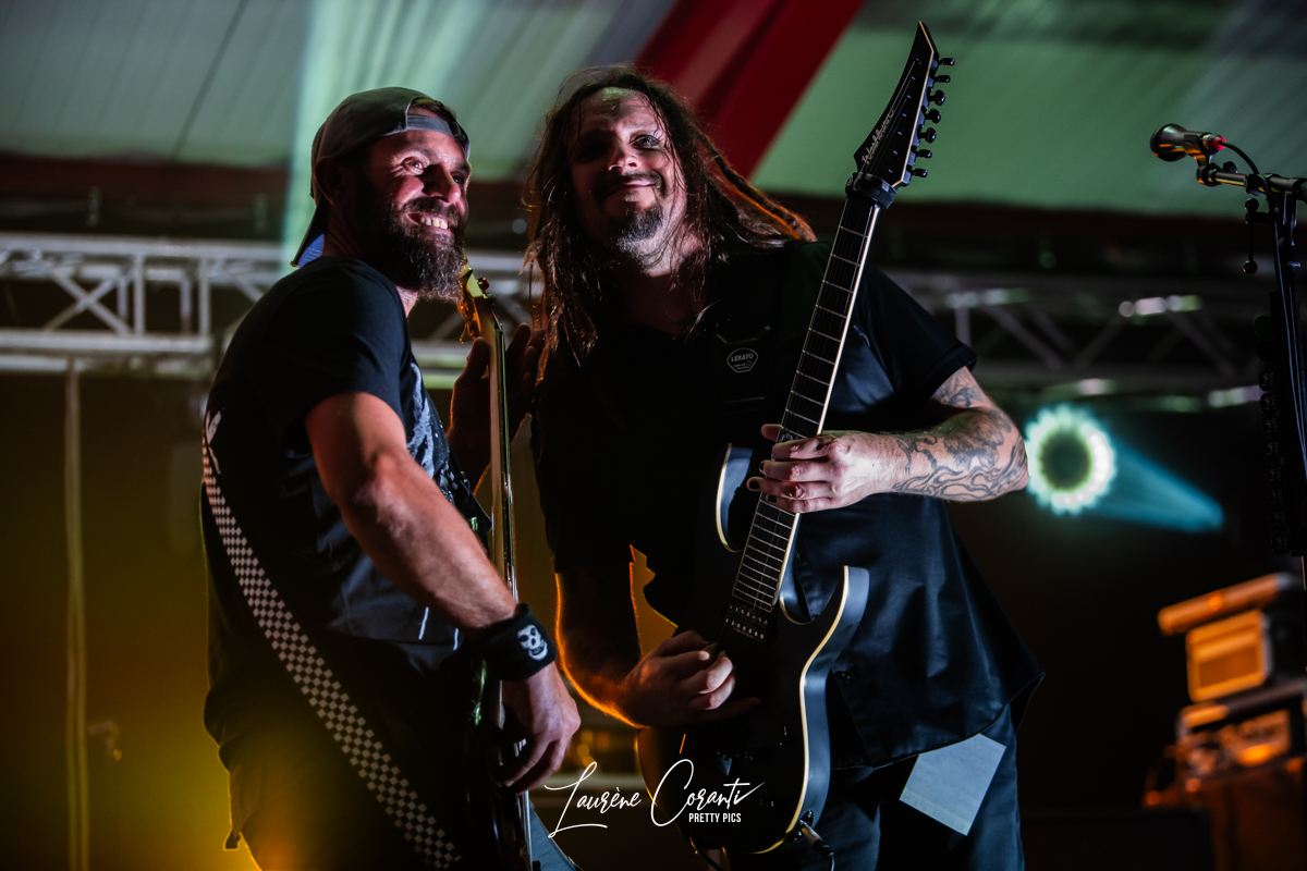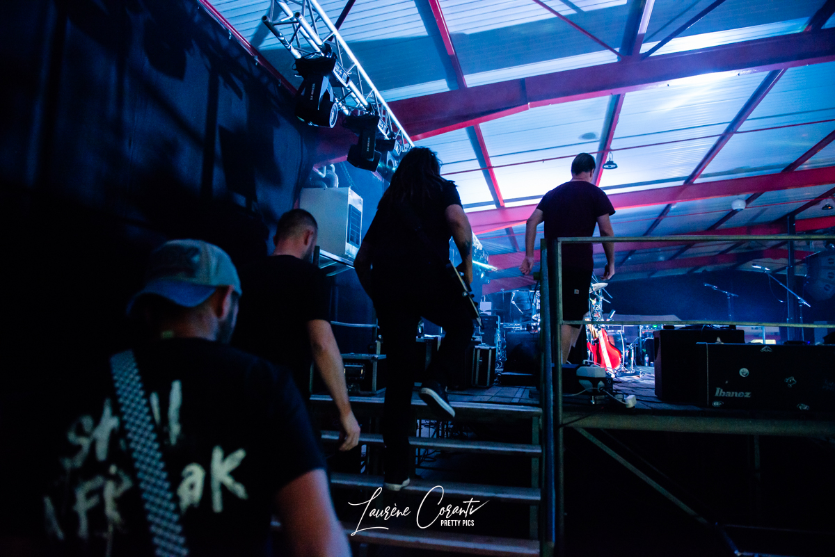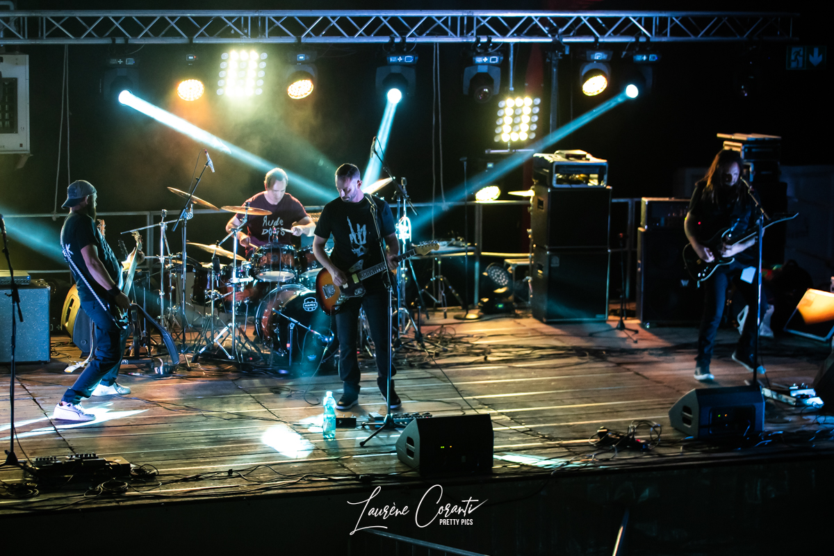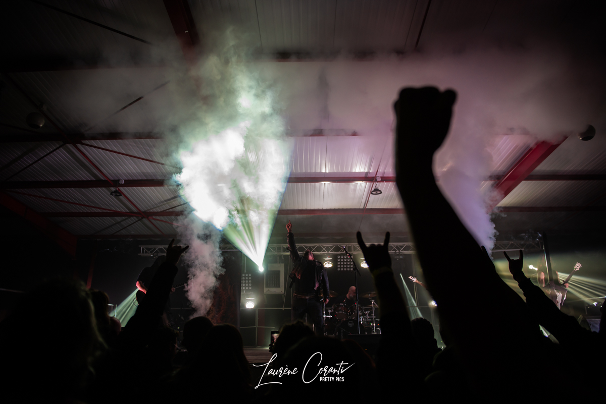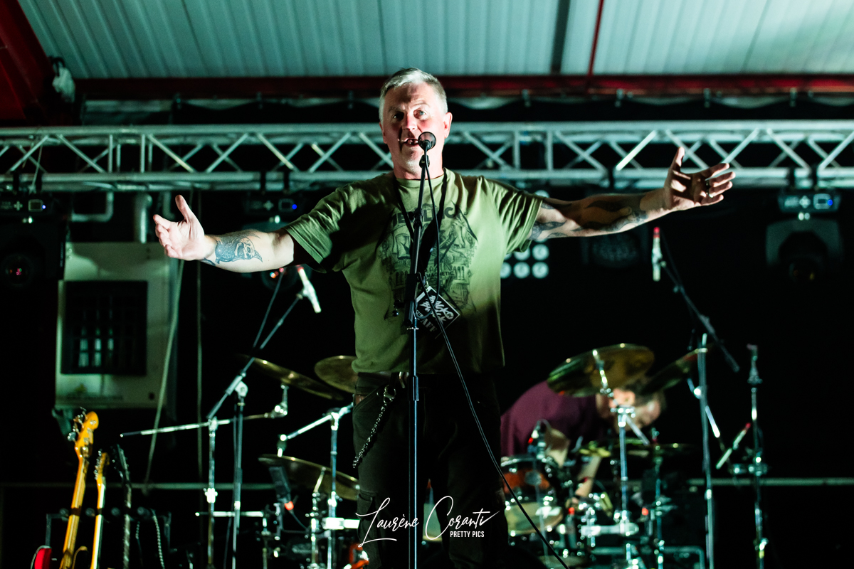 Dès les premières notes, RUDE DOGS a su captiver l’auditoire avec son énergie brute et sa présence scénique magnétique. Ludo, le charismatique chanteur du groupe, s’est avancé sur scène avec une assurance débordante, prêt à déchaîner l’enfer. Sa voix gutturale et puissante a résonné dans tout l’espace, transportant le public dans un voyage sonore intense.