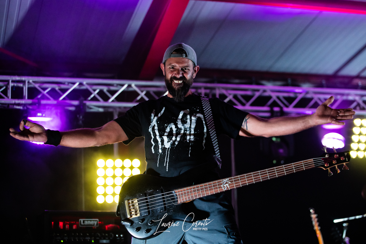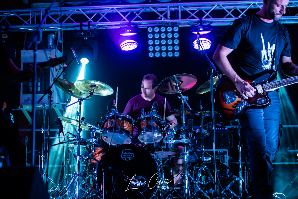 Charles à la batterie a assuré un rythme implacable, propulsant la performance à des sommets insoupçonnés. Les frappes précises et énergiques ont créé une fondation solide pour les morceaux métalliques percutants de RUDE DOGS. Pascal à la guitare a délivré des riffs acérés et des solos éblouissants, tandis que Liyo à la basse a ajouté une profondeur inébranlable à l’ensemble.